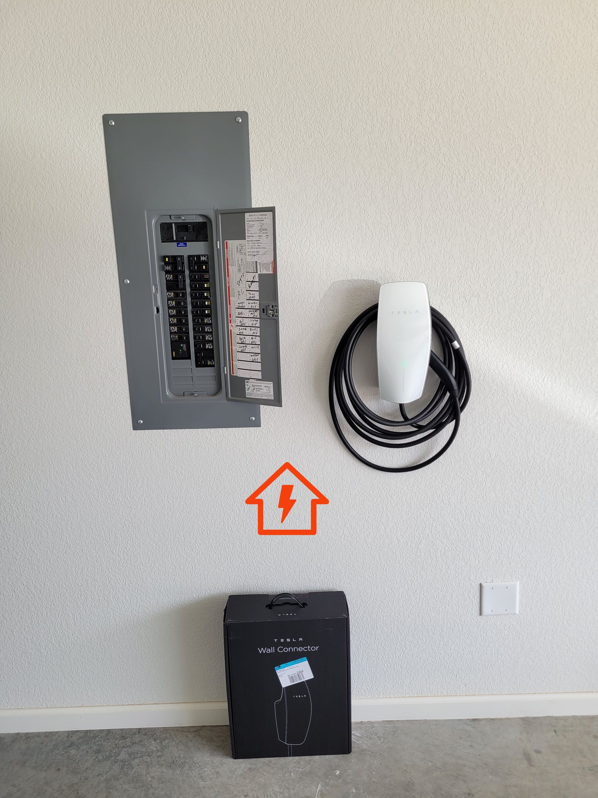48 Amp Continuous Load Tesla EV Charger installed using 6 AWG conductors and an oversized breaker per Section 625 of the NEC